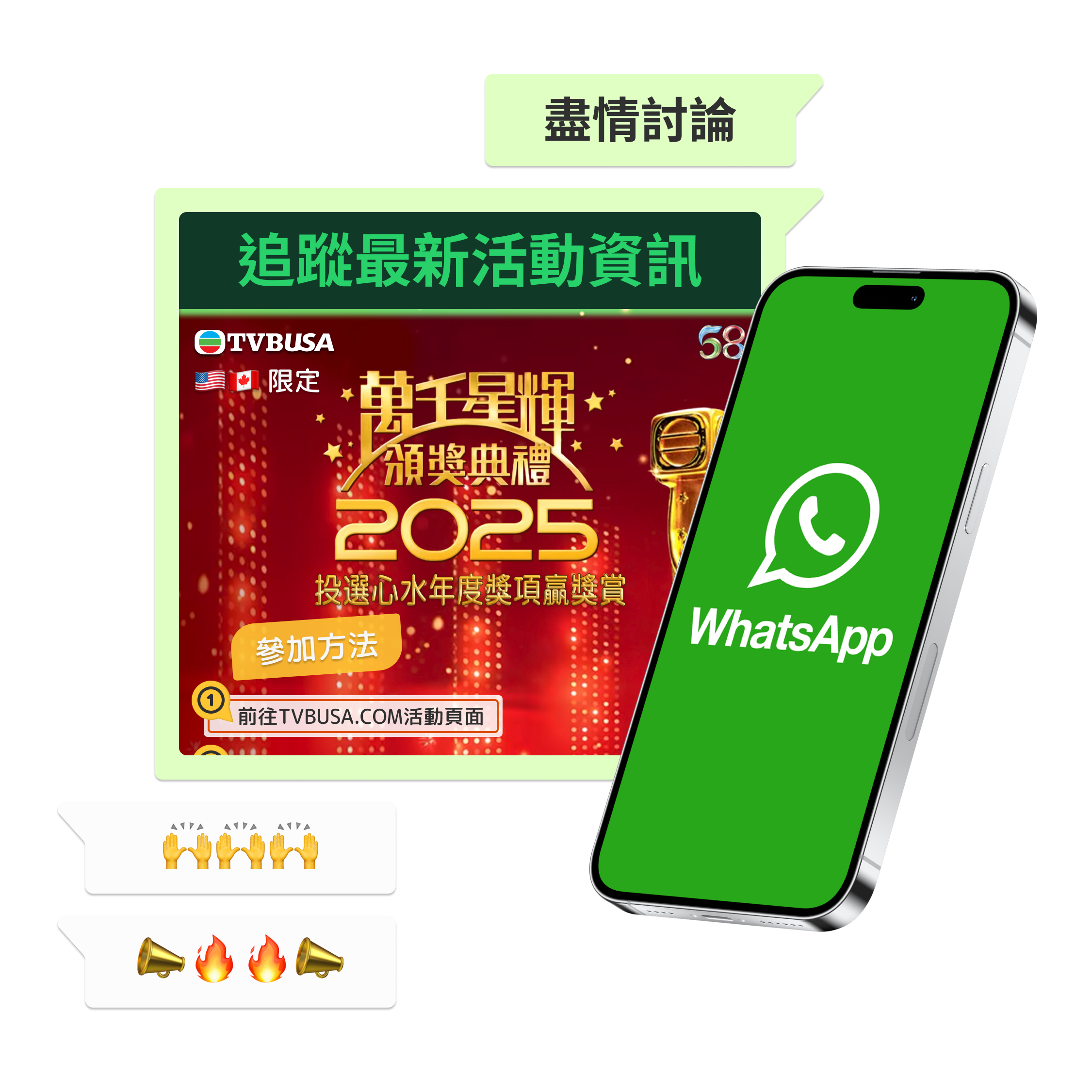 加入 WhatsApp TVBUSA 官方頻道 即時接收 TVB 最新資訊