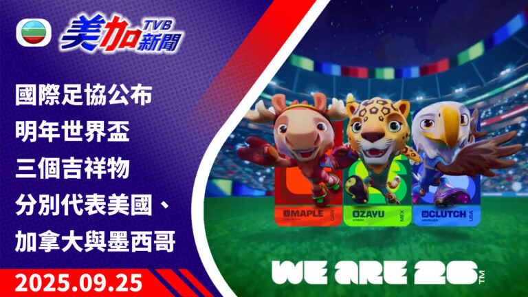 TVB 美加新聞|國際足協公布明年世界盃三個吉祥物 分別代表美國、加拿大與墨西哥|美國新聞|2025 年 9 月 25 日