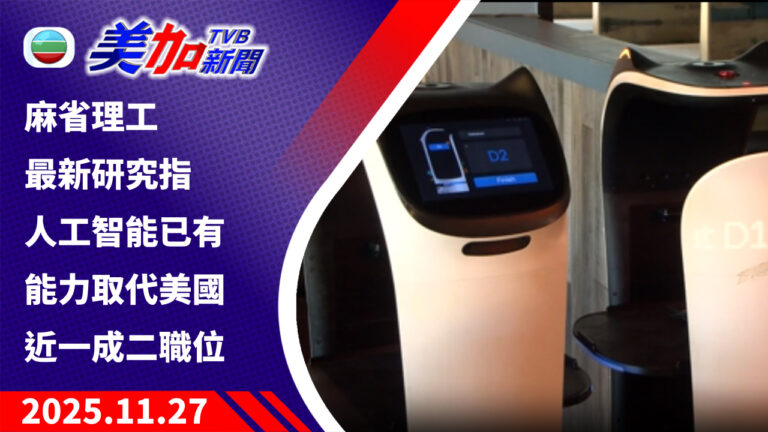 TVB 美加新聞|麻省理工最新研究指 人工智能已有能力取代美國近一成二職位|美國新聞|2025 年 11 月 27 日