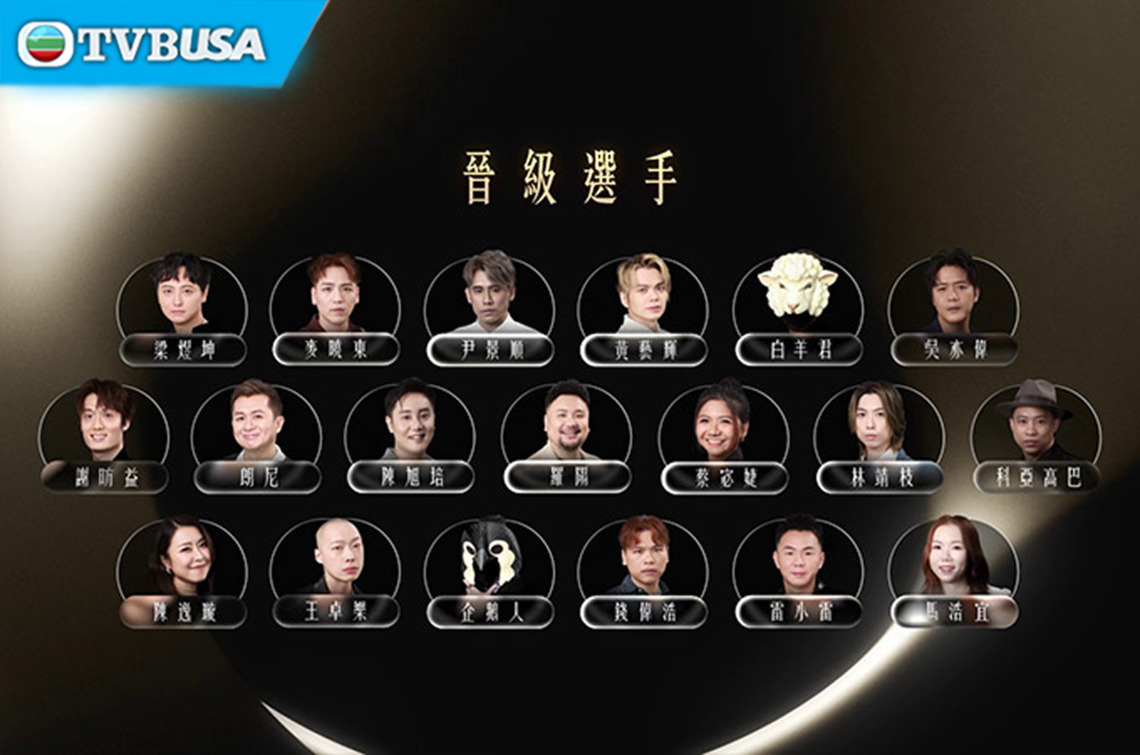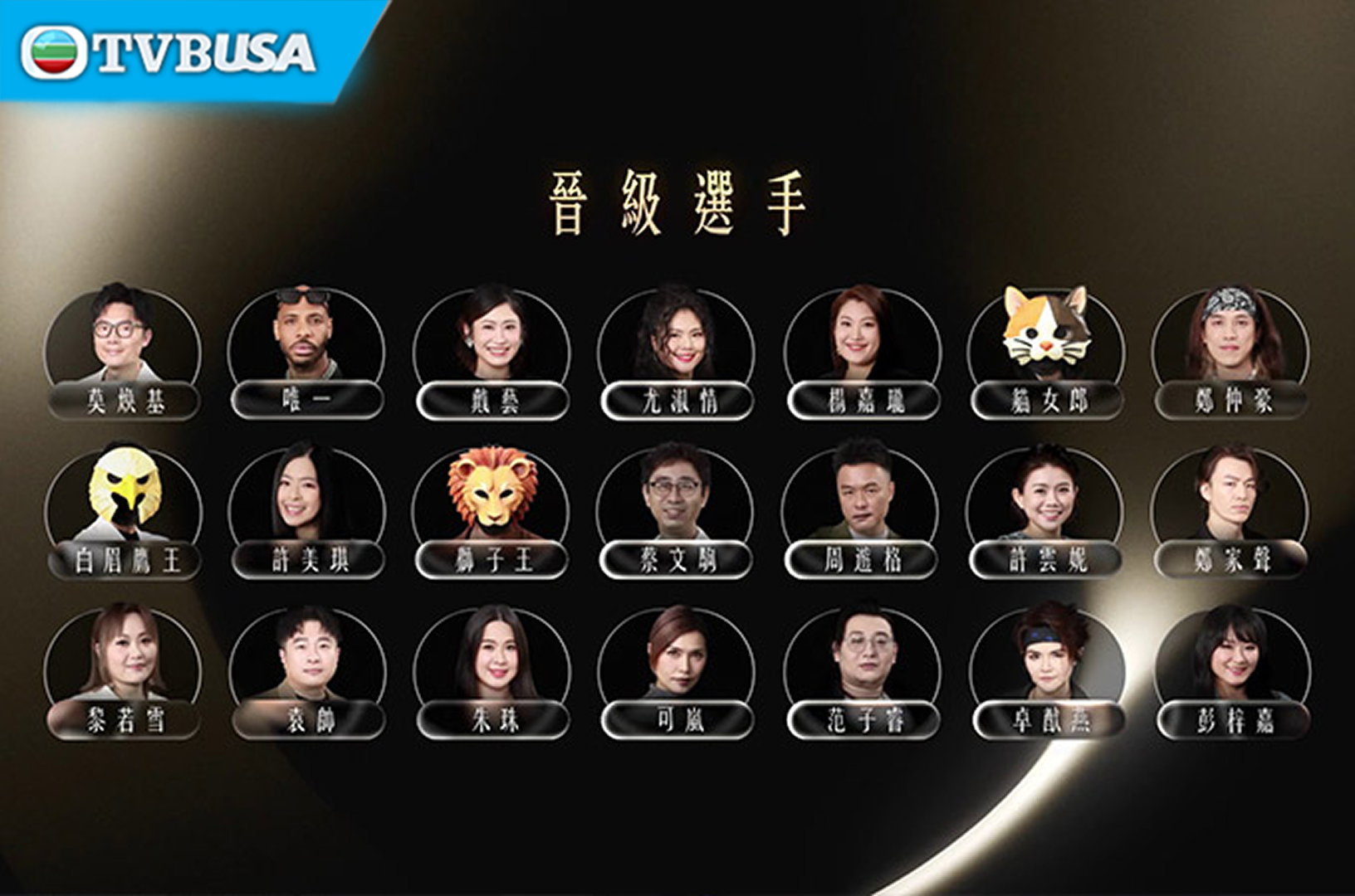 莫煥基、唯一、戴藝、尤淑情、楊嘉瓏、「貓女郎」、鄭仲豪、「白眉鷹王」、許美琪、「獅子王」、蔡文駒、周遊格、許雲妮、鄭家聲、黎若雪、袁帥、朱珠、可嵐、范子睿、卓猷燕、彭梓嘉、梁煜坤、麥曉東、尹景順、黃藝輝、「白羊君」、吳亦偉、謝昉益、朗尼、陳旭培、羅陽、蔡宓婕、林靖枝、科亞高巴、陳逸璇、王卓樂、「企鵝人」、錢偉浩、雷小雷、馬浩宜。