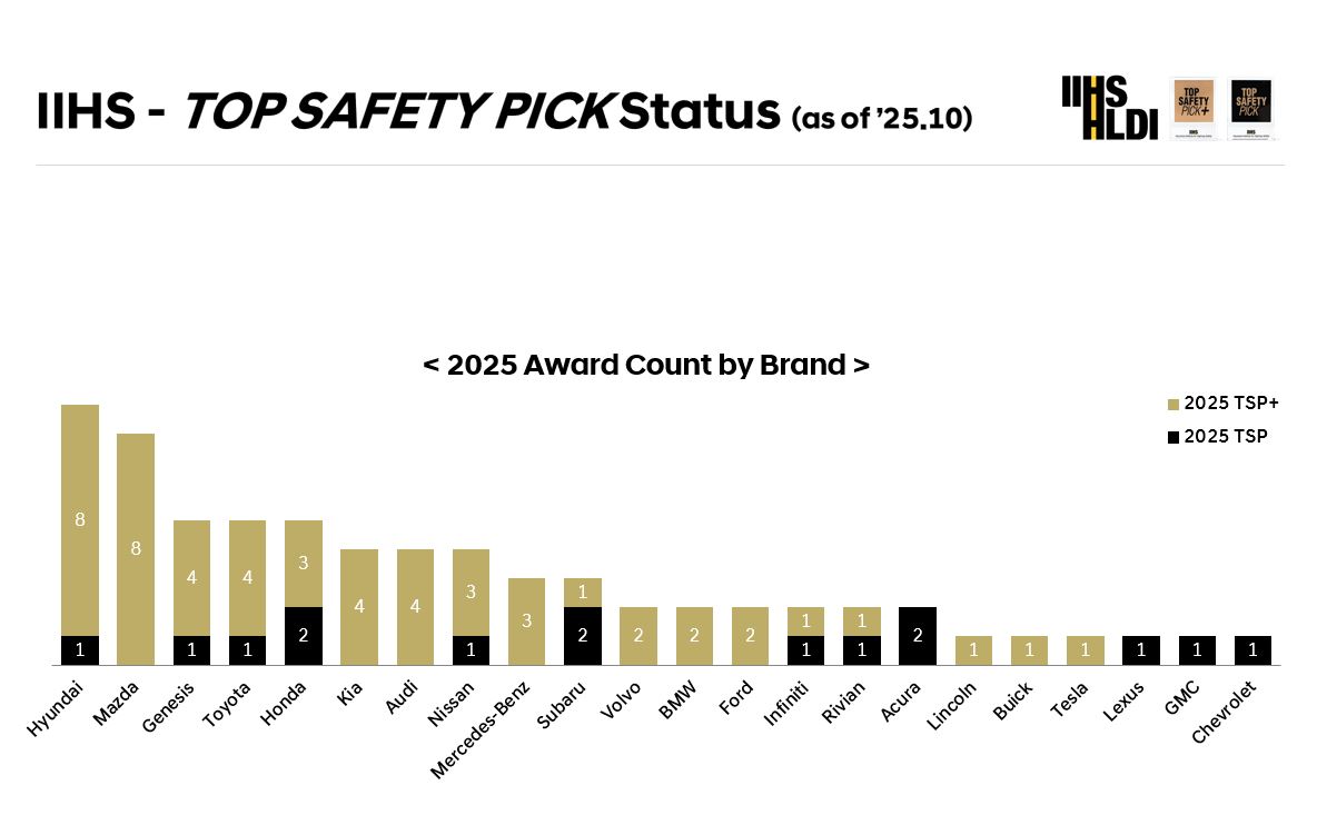 - 現代汽車以九項2025 IIHS 最佳安全首選+和最佳安全首選大獎領先汽車業界